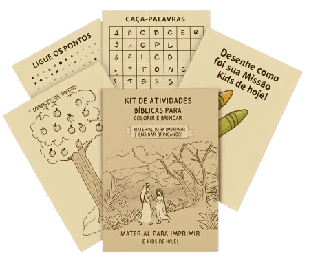 Páginas para imprimir com desenhos bíblicos, desafios, labirintos e jogos que ajudam a criança a fixar o que aprendeu de forma divertida.